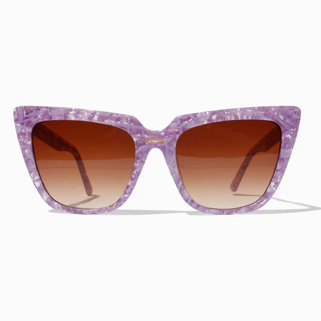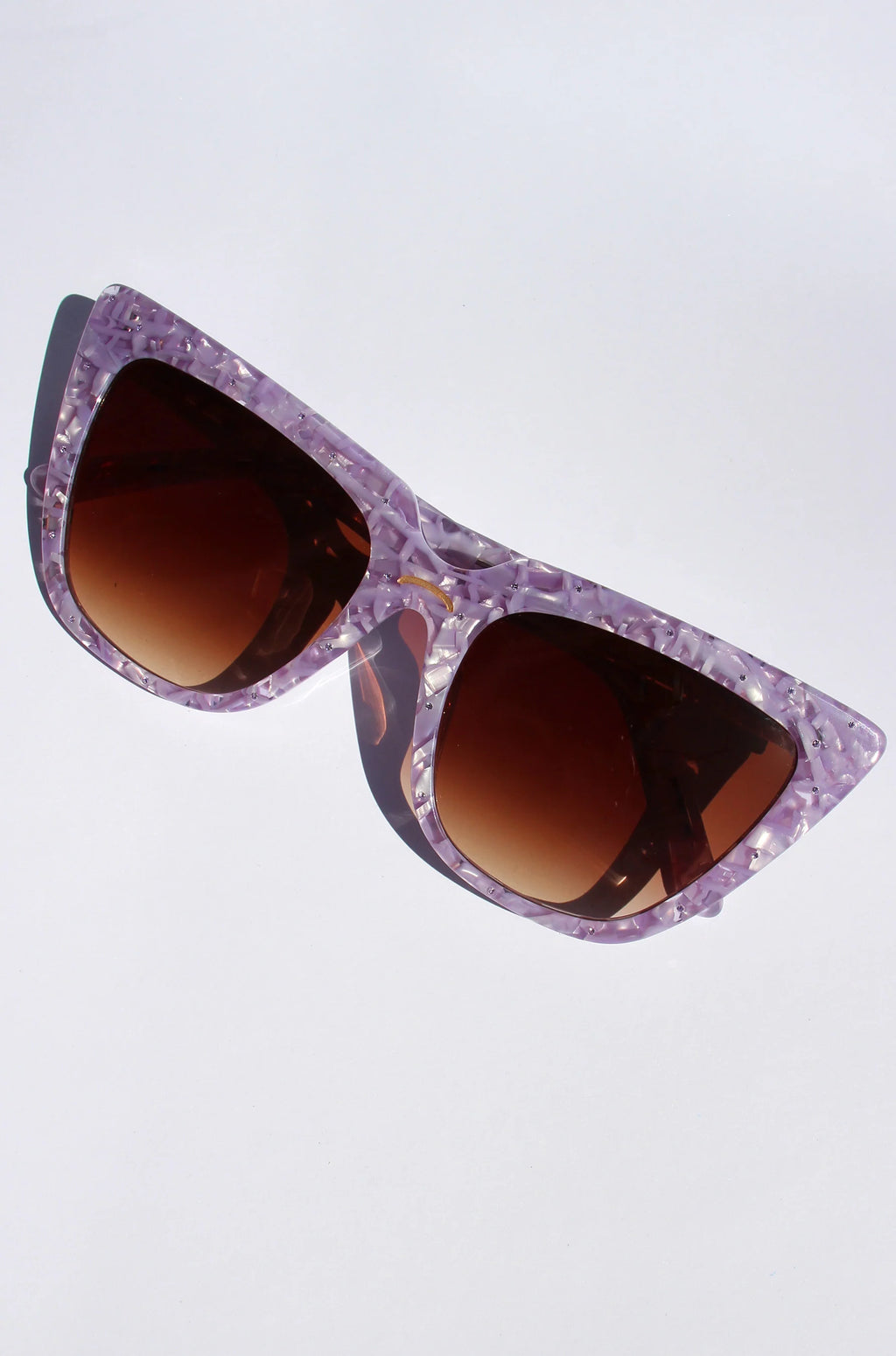 Sharp cat-eye sunglasses in lilac marble with micro crystal detailing.