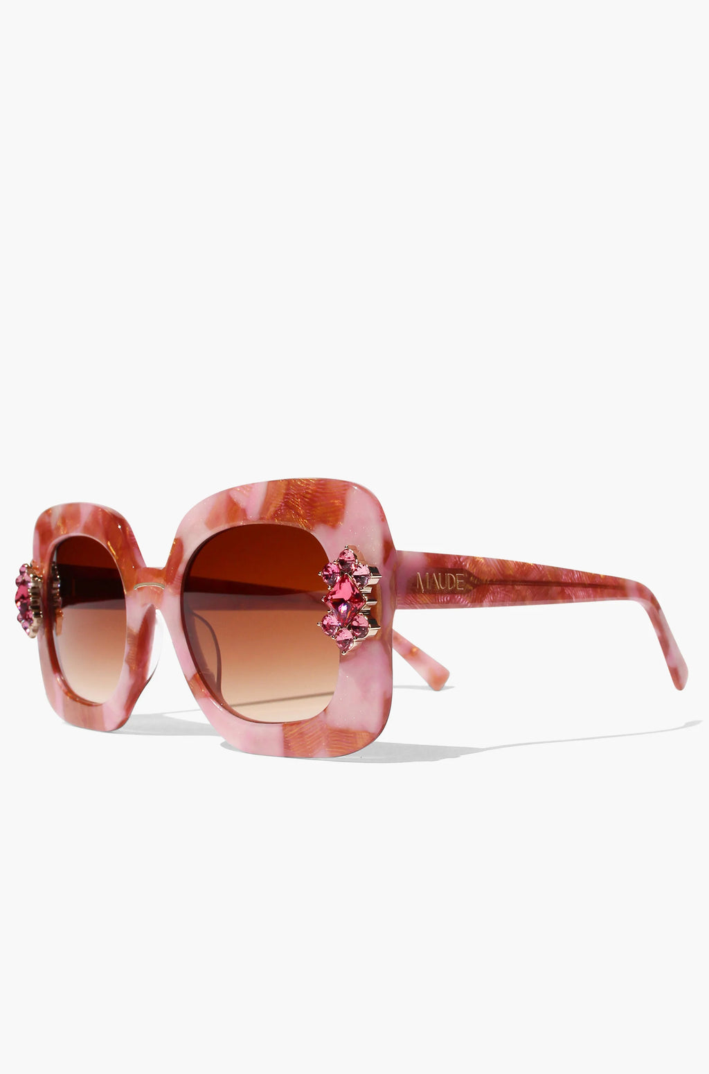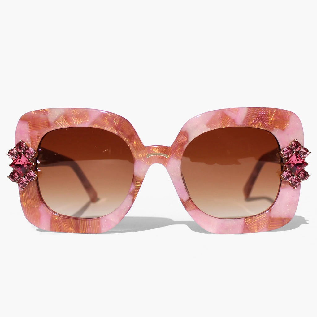 Medium sized square sunglasses in multi acetate with bright crystal flower details.