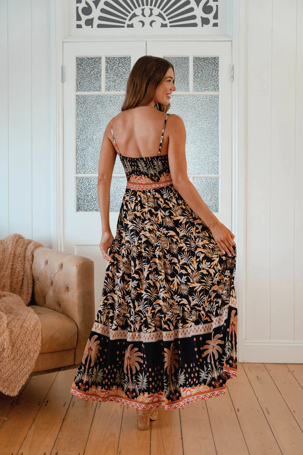 This delightful tie-up front maxi dress is incredibly feminine and flattering, featuring a charming tie-up bust and an elastic shirring back for a perfect fit. The tiered skirt flows gracefully to maxi length, crafted from 100% rayon for ultimate lightweight comfort and style.