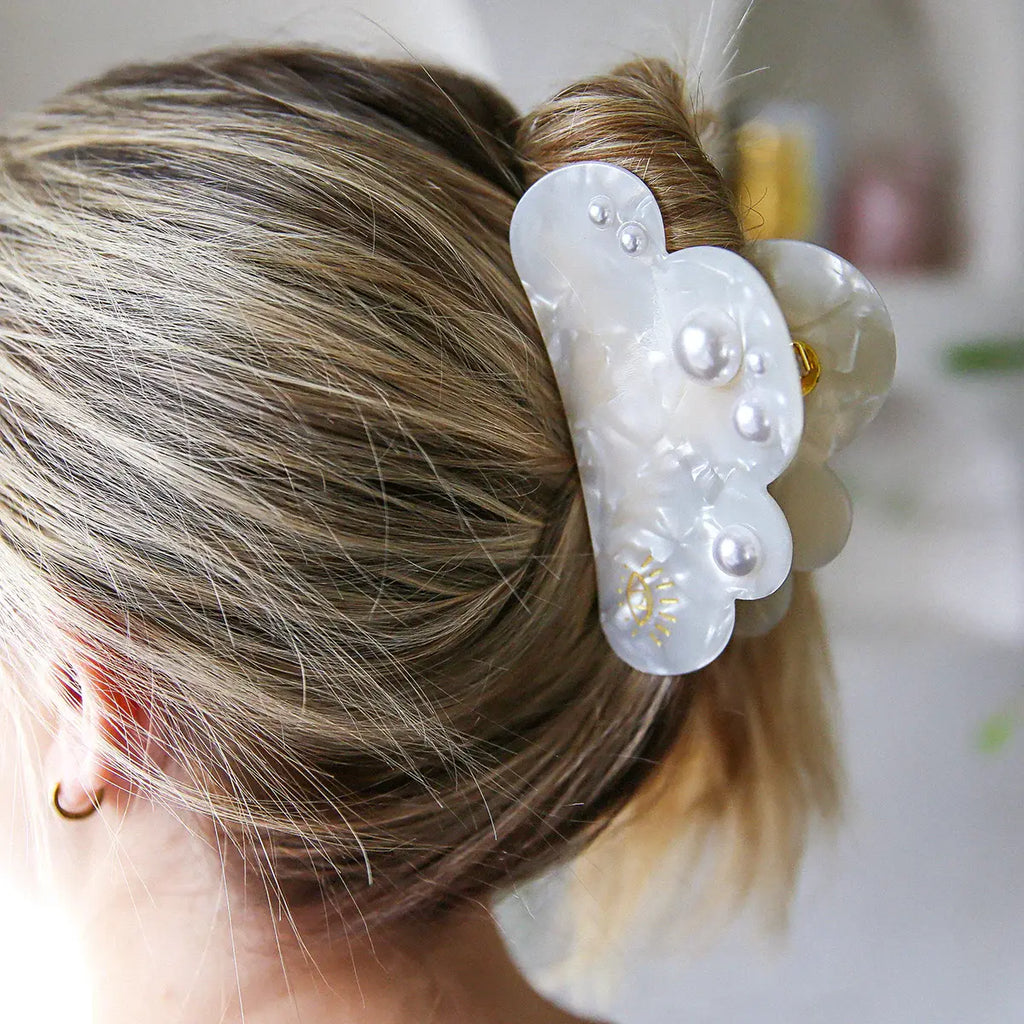 All Hair Claws and Clips are designed by Jemima Kingston in her Australian studio. They are made outside of Australia and mainly comprised of a plant based biodegradable acetate also with a mix of regular acetate, pearls, paint work and metal components.