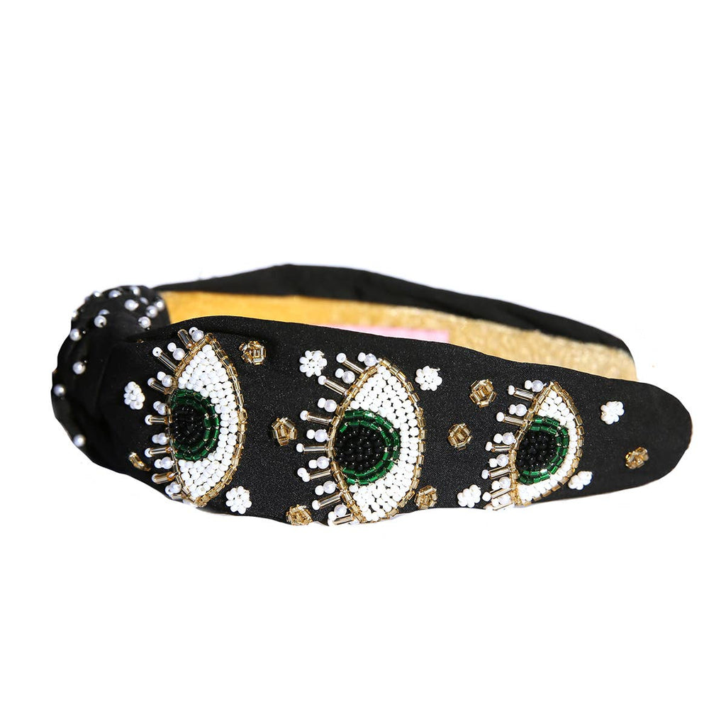 The Eye Top Knot Headband has been designed by Jemima Kingston in Australia. Exquisite detailing make this hand beaded headband a beautiful statement piece. The design is colourful, detailed and vibrant.