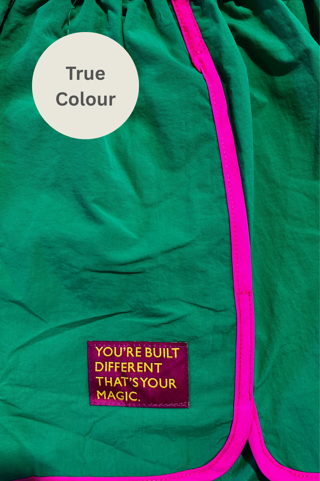 Bright, bold and made for good times only, these emerald green babies are your new warm-weather essential. With a pop of pink trim, a cheeky multi-button front and our iconic Sabbi logo splashed across the back, they’re here to make a statement from every angle.