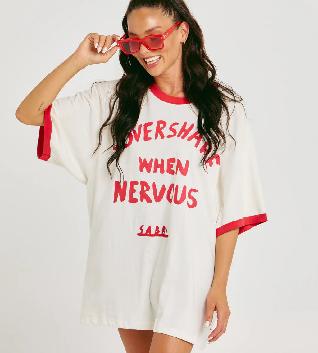 Meet The Very Oversized Overshare Tee - your new favourite conversation starter. Made from 100% cotton, this tee brings all the comfort and none of the chill. Featuring hand-drawn lettering and contrast trims, it's the perfect mix of bold, funny and yep, that's so me.
